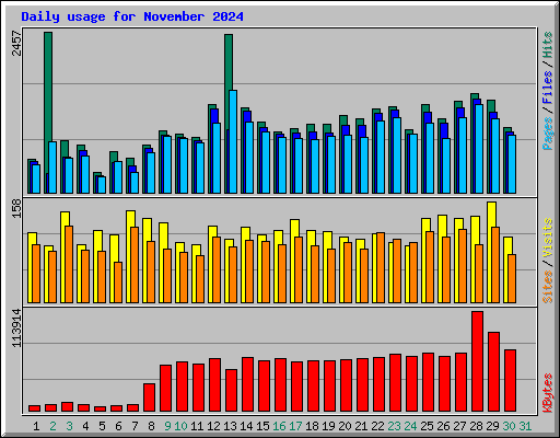 | Day | Hits | Files | Pages | Visits | Sites | KBytes | ||||||